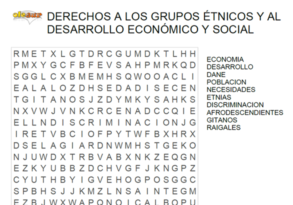SOPA DE LETRAS: Derechos de los grupos étnicos